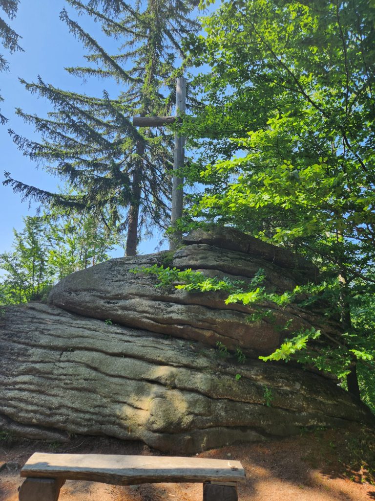 Pro ty, kdo neholdují lezení, je skala snadno dostupný výlōtí.